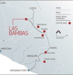 The road and rail corridor that starts at Las Bambas, passes large mining operations including Antapaccay, Constancia and Cerro Verde on the way to the world’s largest copper concentrate port at Matarani. The road traverses three regions, six provinces, 16 districts and 86 communities.